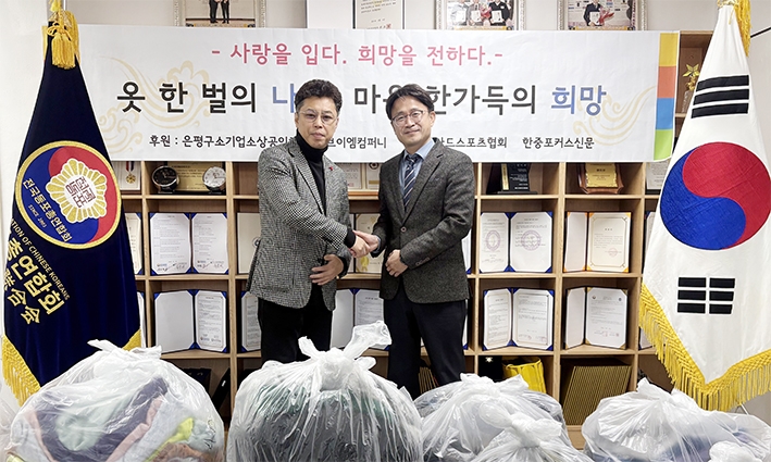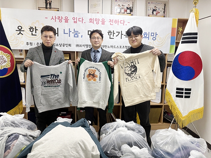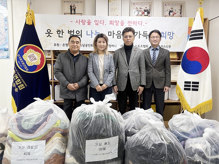 | ¡ã°øÀ͹ýÀÎ ÀºÆò±¸ ¼Ò±â¾÷¡¤¼Ò»ó°øÀÎȸ°¡ °Ü¿ïö ÃßÀ§¿¡ Ãë¾àÇÑ µ¿Æ÷ ¹× ´Ù¹®È°¡Á¤ µî ¼Ò¿Ü°èÃþ¿¡ Àü´ÞÇØ ´Þ¶ó¸ç Àü±¹µ¿Æ÷ÃÑ¿¬ÇÕȸ¿¡ ÀÇ·ù 300¹úÀ» ±âÁõÇß´Ù. (»çÁøÀº ±âÁõ½ÄÀ» ¸¶Ä£ ÈÄ ±â³äÃÔ¿µ. ¿À¸¥ÂÊ ¼Áø¿µ ÀÌ»çÀå, ¿ÞÂÊ ±èÈ£¸² ÃÑȸÀå) |
