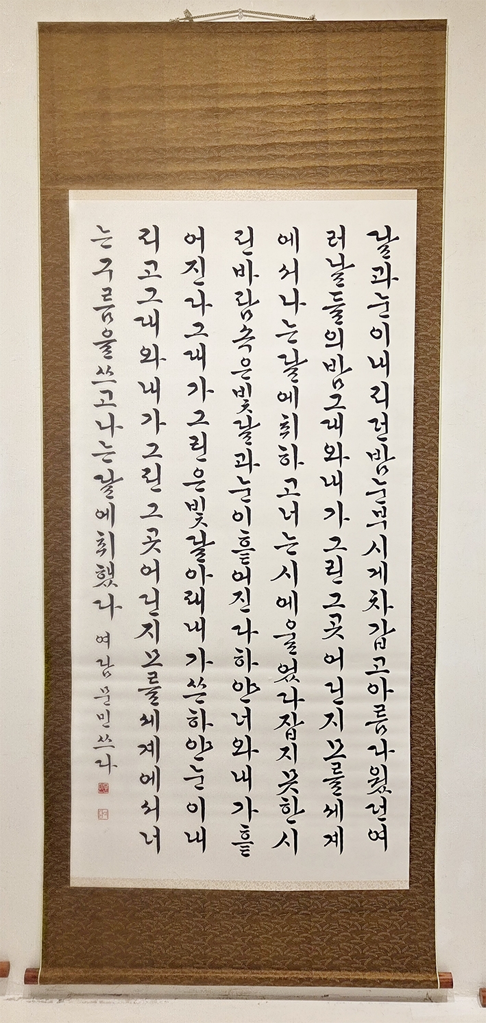 | ¡ãÁ¦27ȸ ¼¼Á¾Çѱۼ¿¹´ëÀü¿¡¼ Ư¼±À» ¼ö»óÇÑ ¹®¹Î ¿øÀåÀÇ ¼¿¹ ÀÛǰ(Çö´ë¹® È긲ü/ ³¼³ ¹ÂÁöÄà °¡»ç Áß¿¡¼). |