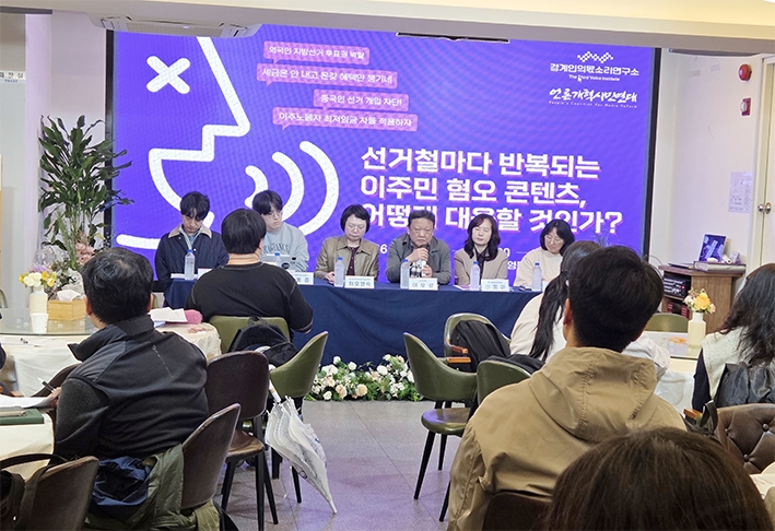 °æ°èÀÎÀǸñ¼Ò¸®¿¬±¸¼Ò¿Í ¾ð·Ð°³Çõ½Ã¹Î¿¬´ë´Â Áö³ 10ÀÏ) ¿ÀÈÄ 4½Ã, ¼¿ï ¿µµîÆ÷±¸ ´ë¸²µ¿¿¡¼ ±ä±ÞÅä·Ðȸ ¡®¼±°Åö¸¶´Ù ¹Ýº¹µÇ´Â ÀÌÁÖ¹Î Çø¿À ÄÜÅÙÃ÷, ¾î¶»°Ô ´ëÀÀÇÒ °ÍÀΰ¡?¡¯¸¦ °³ÃÖÇß´Ù.