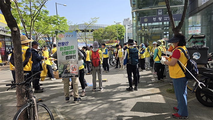 Âü°¡ÀÚµéÀº 7È£¼± õ¿Õ¿ª 2¹ø Ãⱸ¿¡¼ Áý°áÇÑ µÚ µî»ê·Î¸¦ µû¶ó À̵¿ÇÏ¸ç ¾²·¹±â ¼ö°Å Ȱµ¿À» ÆîÄ¡°í, »êºÒ ¿¹¹æÀ» À§ÇÑ È«º¸ Ȱµ¿µµ º´ÇàÇß´Ù. ƯÈ÷ º½Ã¶ °ÇÁ¶ÇÑ ³¯¾¾·Î »êºÒ À§ÇèÀÌ ³ô¾ÆÁö´Â ½Ã±â¸¦ ¸Â¾Æ ½Ã¹Îµé¿¡°Ô »êºÒ °æ°¢½ÉÀ» ³ôÀÌ´Â µ¥ ÁÖ·ÂÇß´Ù.